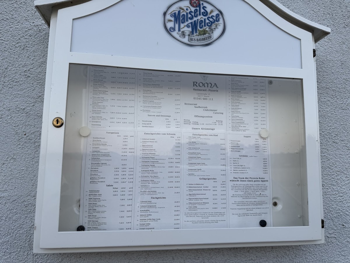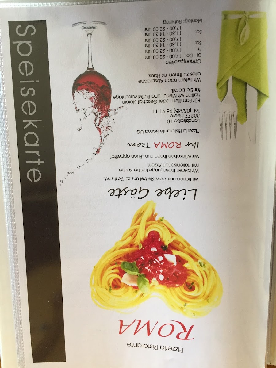 Welcome to Pizzeria-Ristorante Roma, located at Landstraße 10, 38277 Heere, Germany. This gem offers an inviting menu brimming with authentic Italian flavors that will transport you straight to Rome. Patrons consistently commend the restaurant for its fresh, generous portions and exceptional taste.